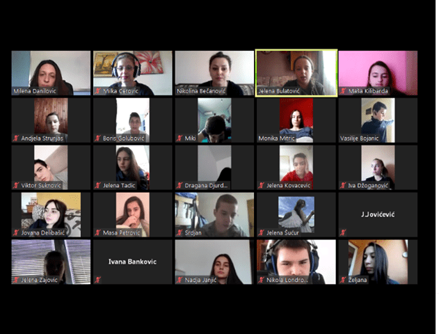 Zoom platforma učenicima omogućava da dva puta nedjeljno održavaju online kontakt i diskutuju na različite teme. Do sada je bilo riječi o različitim alatima koji se mogu koristiti za online nastavu, o aktuelnom epidemiološkoj situaciji i njenom uticaju na ljude, o uticaju medija.