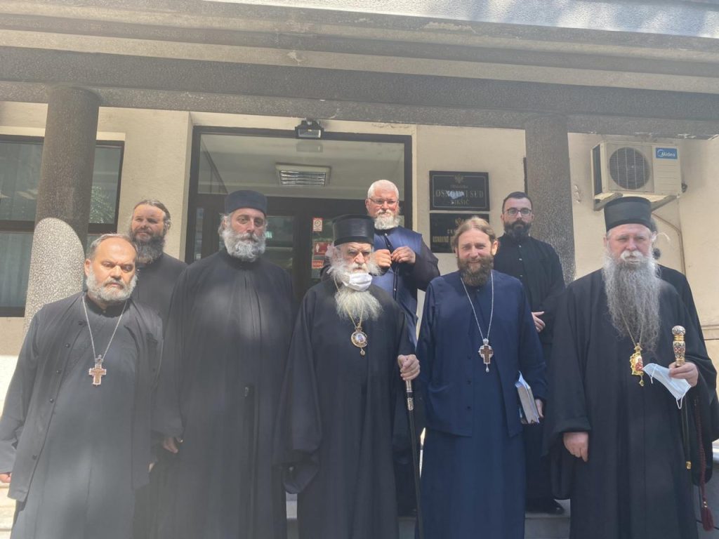Ispred suda je bio prisutan veliki broj građana koji su aplauzima i uzvicima “Ne damo svetinje, ne damo vladiku”, pozdravili mitropolita Amfilohija, episkopa Joanikija i sveštenike.
