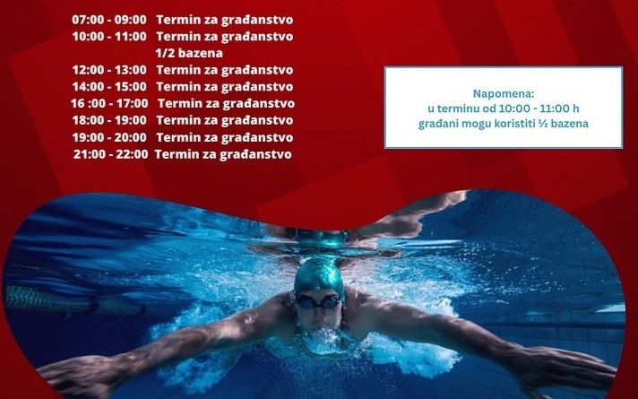 Posebna napomena odnosi se na termin od 10:00 do 11:00 kada građani mogu koristiti polovinu bazena.