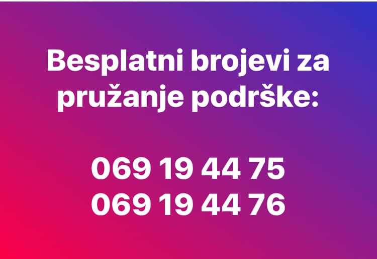 Broj 069 19 44 76 možete pozvati ukoliko vam je potrebna psiho-socijalna podrška naših psihologa – ako osjećate strah, uznemirenost, brigu i teško podnosite boravak u izolaciji zbog aktuelne situacije.