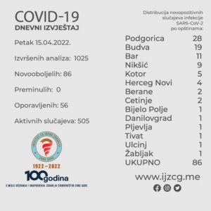 Bez smrtnih slučajeva, 86 novozaraženih
