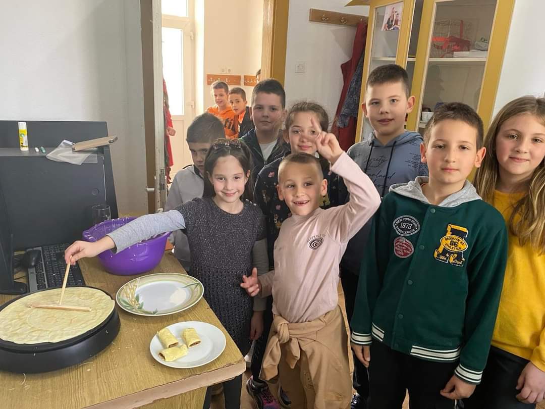 Mališani su uživali u pravljenju palačinki po različitim receptima, ali i degustirali gotove sa različitim nadjevima.