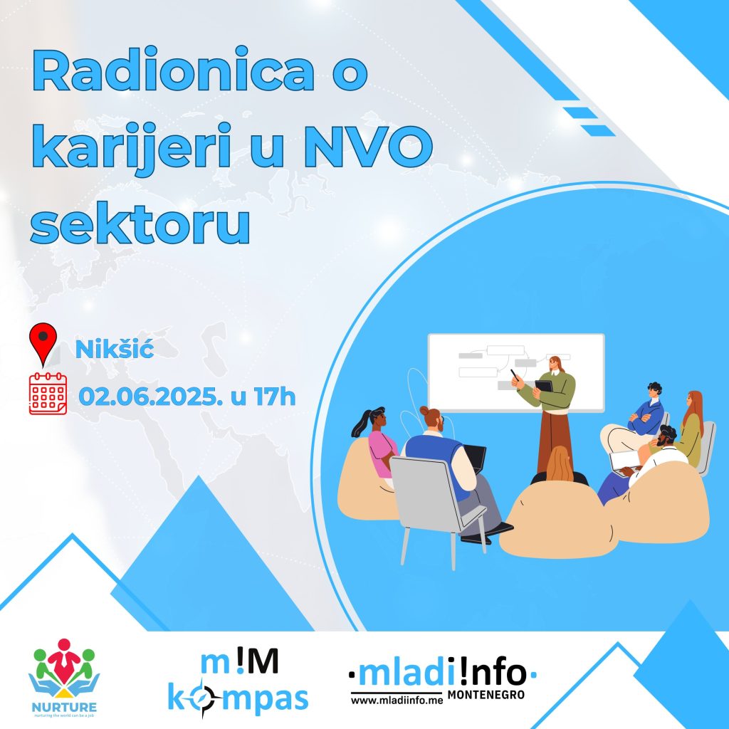 NVO Mladiinfo Montenegro poziva mlade da se prijave na radionicu o karijeri u NVO sektoru, koja će biti održana danas u 17h, u Informativno – edukativnom centru u Nikšiću.