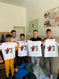 U razgovoru sa učenicima, fudbaleri su podijelili majice sa Andrijinim likom, simbolično podsjećajući na vrijednosti koje je zastupao – skromnost, rad i ljubav prema svom gradu.