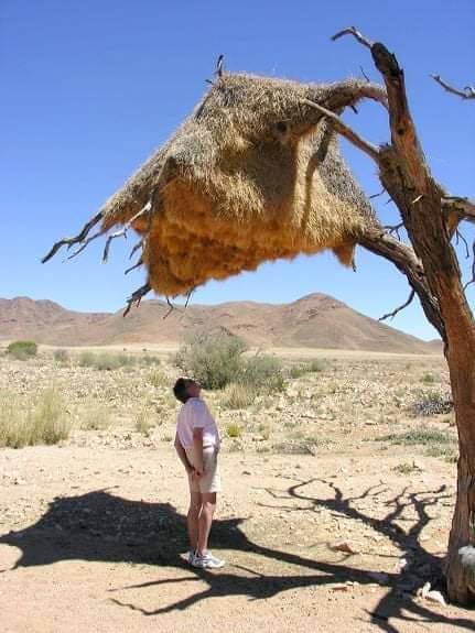 Ogromno gnijezdo društvenih tkalja u Namibiji, vjerovatno najspektakularnija građevina koju je sagradila bilo koja ptica.