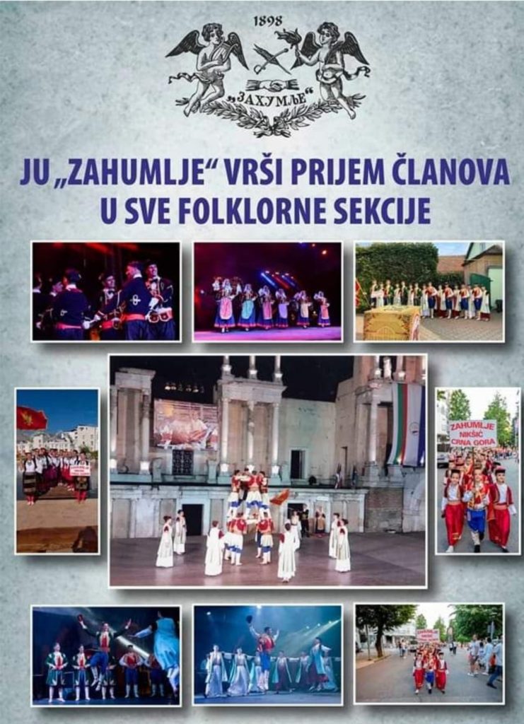 JU ,,Zahumlje” vrši upis novih članova 02/09/2022JU ,,Zahumlje” Nikšić vrši upis novih članova u sve folklorne sekcije.Sve informacije možete dobiti pozivom na broj telefona 068/535-811.