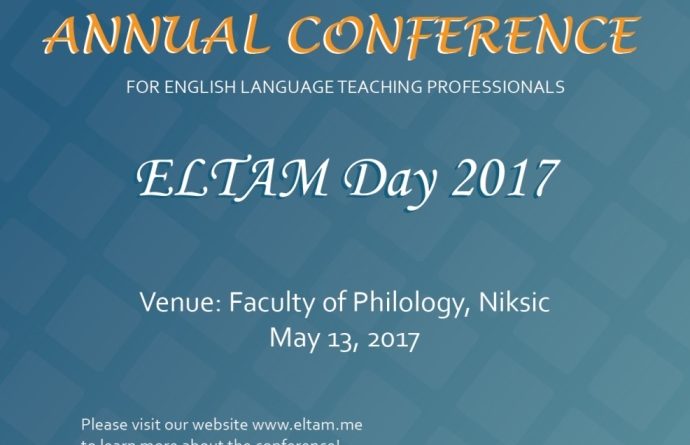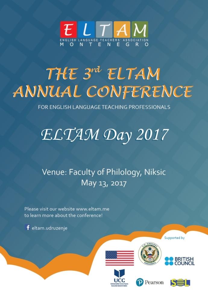Udruženje nastavnika engleskog jezika Crne Gore ELTAM organizuje treću nacionalnu konferenciju za nastavnike engleskog jezika pod nazivom „ELTAM dan 2017.“, koja će se održati 13. maja na Filološkom fakultetu u Nikšiću sa početkom u 10 časova.