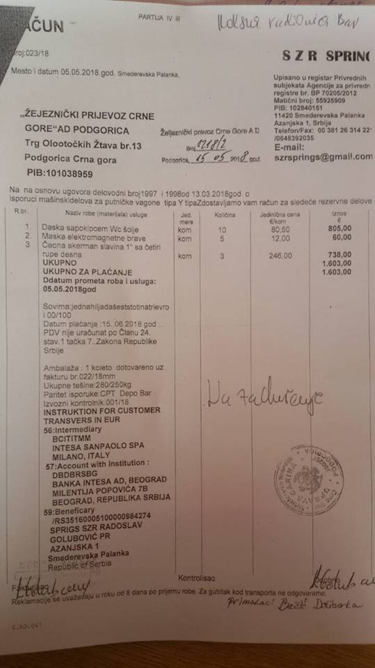 Dokaz o tome kako se posluje, u sistemu javnih nabavki ove željezničke kompanije možda najbolje ilustruje račun od 15. maja ove godine do kojeg su “Vijesti” došle iz izvora bliskih vrhu menadžmenta ovog preduzeća.