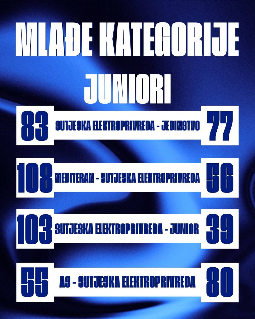 Juniori, pod vođstvom Željka Jovanovića, zabilježili su četiri pobjede u Superligi. Tim je savladao Jedinstvo (83:77), Mediteran (97:76), Junior (103:39) i As (80:55), što ih je dovelo do skora 6-1.