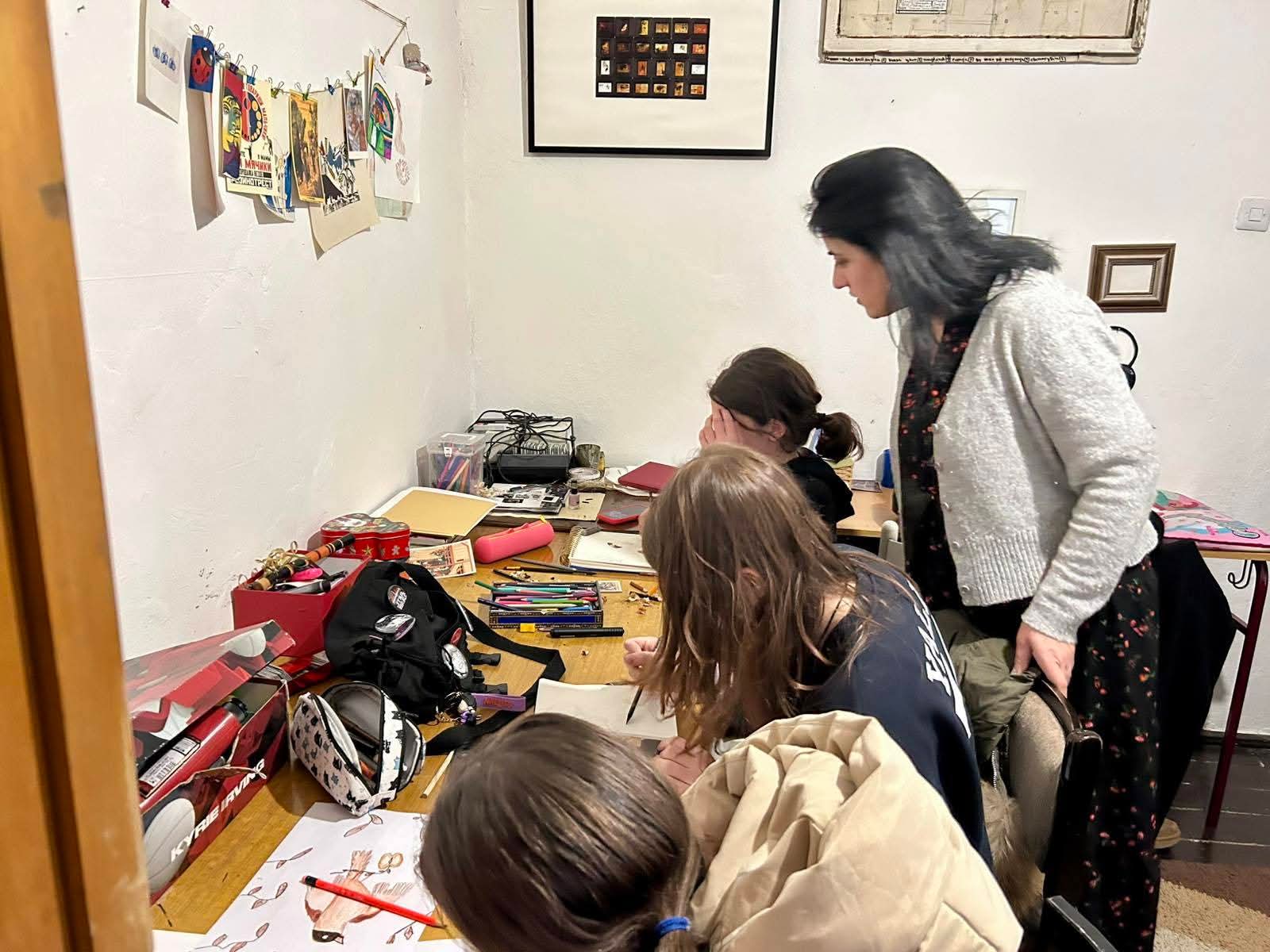 Članovi likovne sekcije OŠ “Olga Golović” zajedno sa nastavnicom likovne kulture posjetili su Omladinski klub Tibor, gdje se održava škola slikanja koju vode akademske umjetnice Isidora Mijanović i Jelica Mijanović.