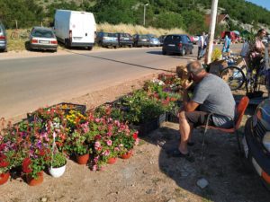 Ovdje možete kupiti i voća i povrća. Krompir mladi je 0,80 centi. Paprike su 3 eura džak, 1 euro kilogram, paradajiz je 1,5. Kilogram lubenice je 0,70 centi.