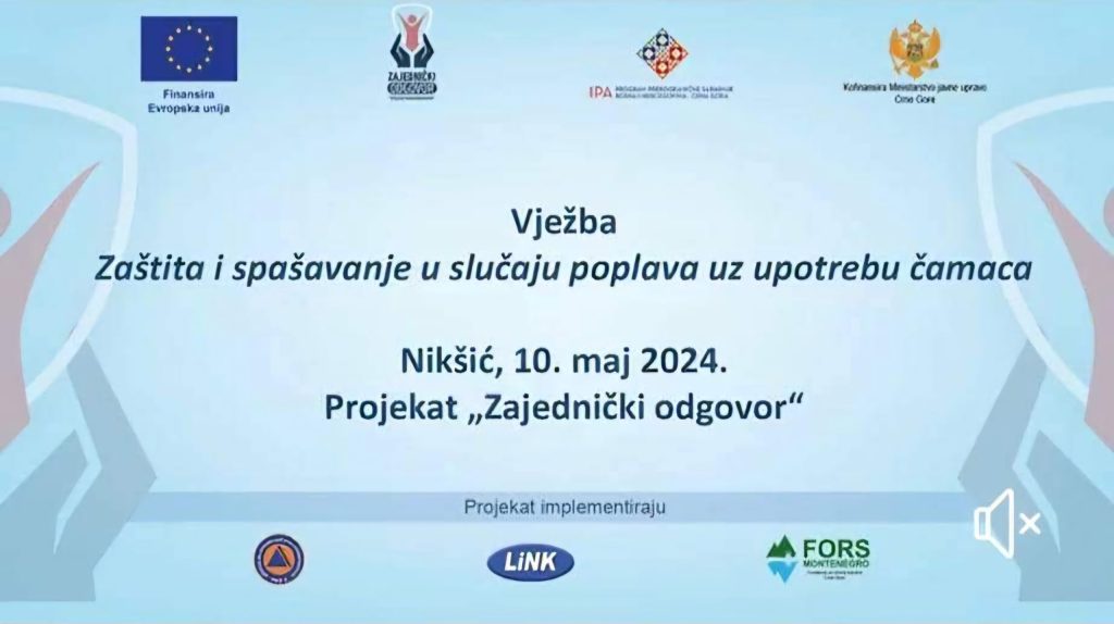 U Nikšiću su od 8. do 10. maja, u okviru projekta „Zajednički odgovor“, organizovane obuka i interventna vježba na temu Spašavanje u slučaju poplava uz upotrebu čamaca za pripadnike službi zaštite i spašavanja iz Crne Gore i Bosne i Hercegovine, u cilju jačanja spremnosti za spasilačke intervencije, kao i unapređivanja prekogranične saradnje.