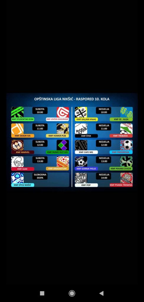 Slobodni u ovom kolu bile su ekipe Gornjeg Polja, Dnevnog Centra i Caffe Marvela.