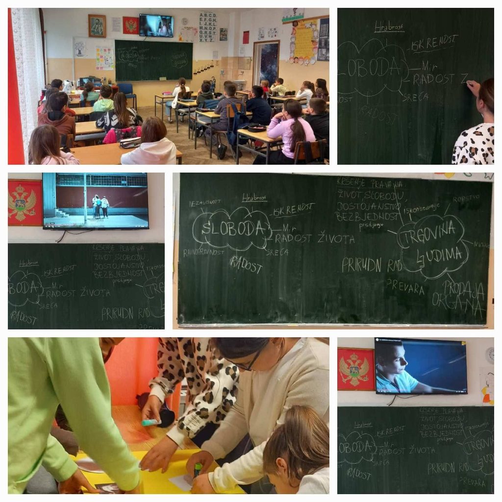 Povodom 18. oktobra – Evropskog dana borbe protiv trgovine ljudima, u Osnovnoj ṣ̌koli “Jagoš Kontić” jedan ṣ̌kolski čas je bio posvećen diskusiji na ovu važnu temu. Učenici od VI do IX razreda imali su priliku da pogledaju film “Izmedju jave i sna”, koji se bavi problematikom trgovine ljudima i načinima prepoznavanja i sprječavanja ovog oblika nasilja.