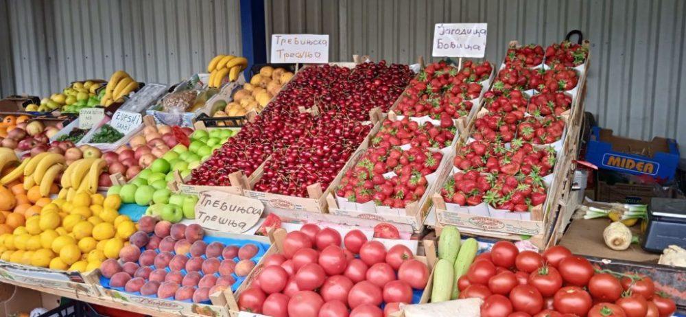 Paradjiz je od 1euro do dva eura domaći, paprike od jedan euro do dva eura. Zelena salata je 2 eura. Jagoda je 4 eura, trešnja 5 eura Trebinjska.