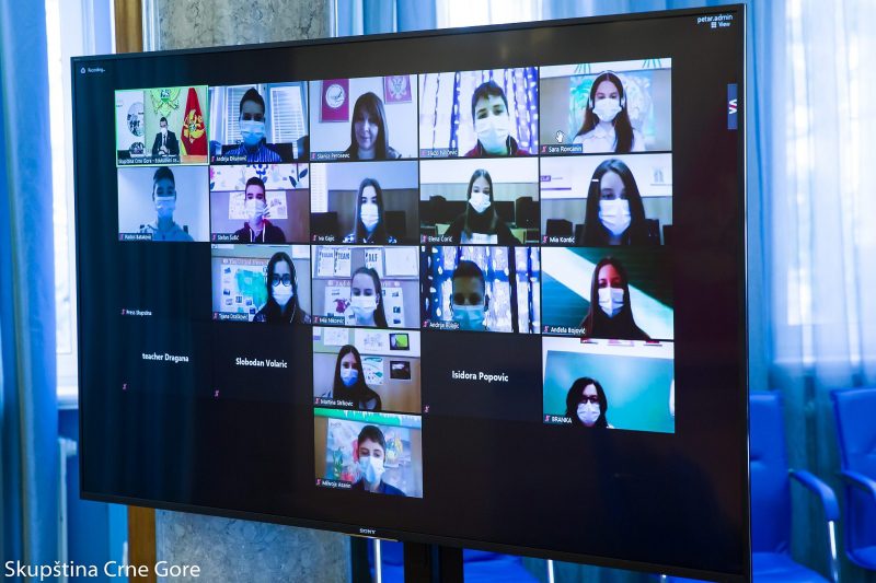 “Razgovor se sastojao iz dva segmenta i bio je koncipiran tako da je tokom prvog dijela svaka grupa imala deset minuta za postavljanje pitanja, dok je drugi dio bio opredijeljen za diskusiju sa predsjednikom Skupštine. Djeca su bila podijeljena u tri grupe (VII, VIII, IX razred) i raspoređena u tri učionice, kako bi se ispoštovala propisana distanca”, dodaje se u saopštenju.