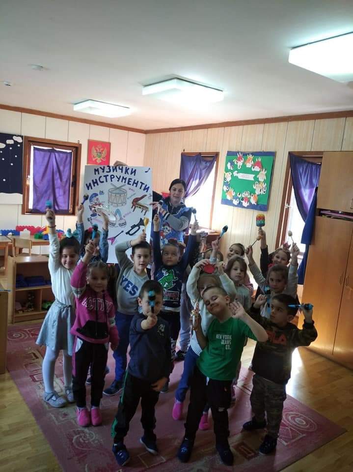 Jedna sjajna radionica u kojoj je nastalo mnoštvo muzičkih instrumenata od reciklažnog materijala. Naši mališani su uživali i svojim vještim rukama lijepili, rezali, bojali i na kraju djelove spajali u zvečke, daire, bendžo, bubnjeve, gitare. Saznali su šta je orkestar, učili o zvuku, učili da prepoznaju instrumente, zvukove za par instrumenata, jednom riječju spojili lijepo i korisno.