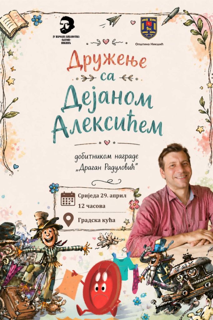 Gost događaja biće poznati književnik, dramski pisac i pjesnik Dejan Aleksić, dobitnik nagrade “Dragan Radulović” za zbirku dječijih pjesama “Džinovi, strašila i nešto treće”.