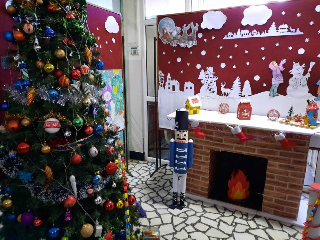 Kamin i Krcka Oraščića su pravile vaspitačice i zajedno sa djecom su okitile jelku u holu na glavnim vratima.