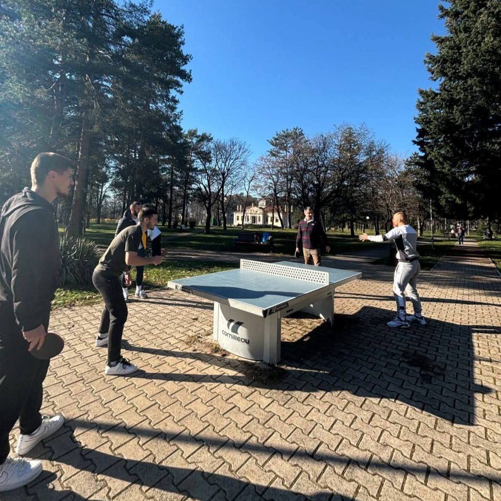 U okviru predmeta Sport za sve, studenti Fakulteta za sport organizovali su i odigrali sjajan meč stonog tenisa u gradskom parku. Ovaj nesvakidašnji čas na otvorenom spojio je rekreaciju, zabavu i edukaciju, podsjećajući koliko je važno da fizička aktivnost bude dio svakodnevnog života.