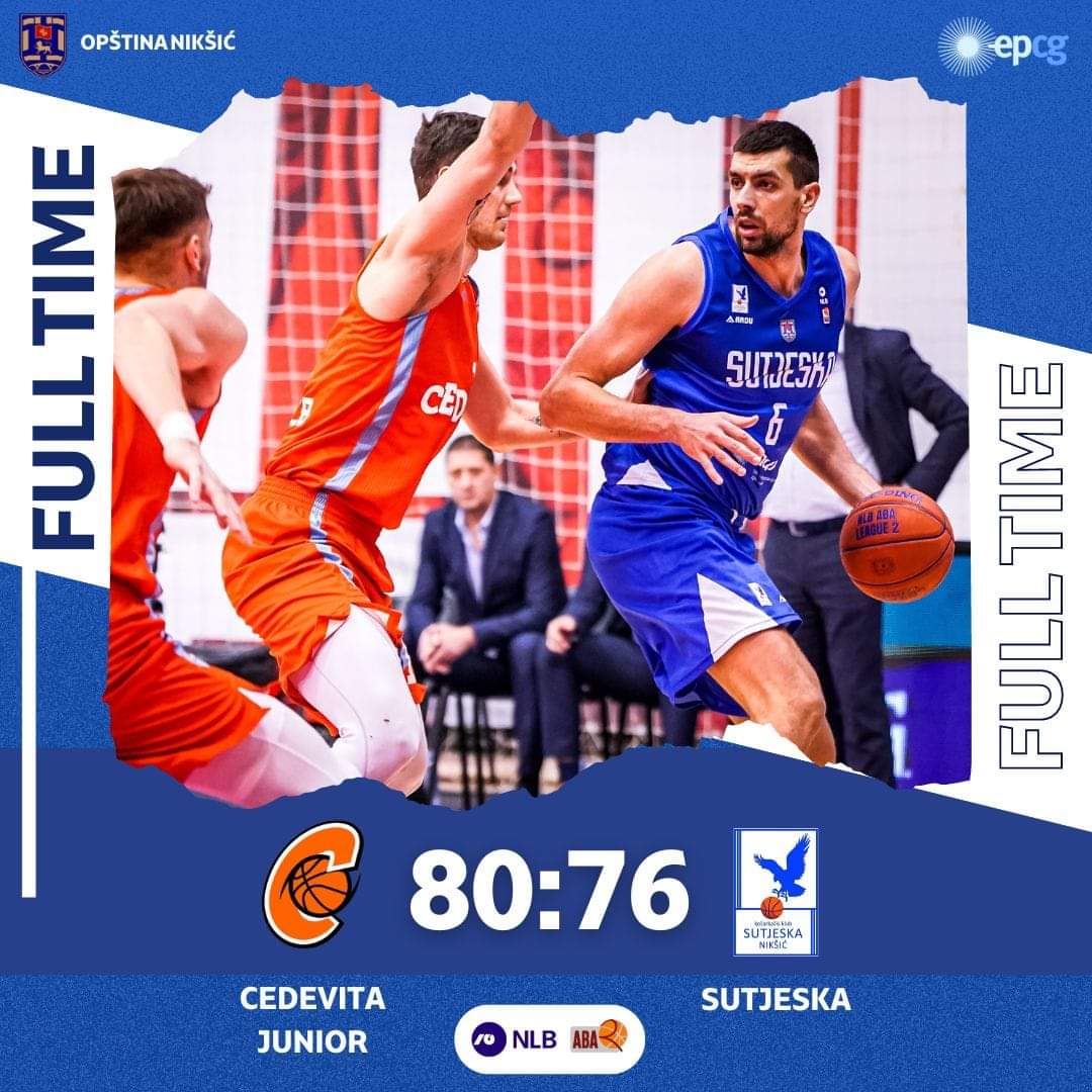 Košarkaški klub Sutjeska je sinoć u drugom meču na “balonu” NLB ABA2 lige u Novom Sadu izgubio od KK Cedevite Junior 80:76.