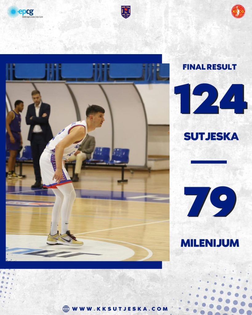Sutjeska je večeras u Nikšiću, u šestom kolu Prve crnogorske košarkaške lige, savladala Milenijum 124:79.