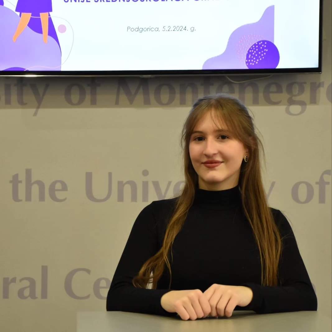 Učenica Srednje ekonomske škole Tatjana Božović je 5. februara predstavljala školu kao delegat Unije Srednjoskolaca Crne Gore na IX Generalnoj skupštini, održanoj u multimedijalnoj sali Univerziteta Crne Gore.