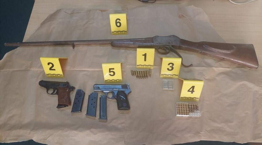 Pretresom su pronađena i oduzeta dva pištolja, puška i 58 komada municije različite vrste i kalibra.