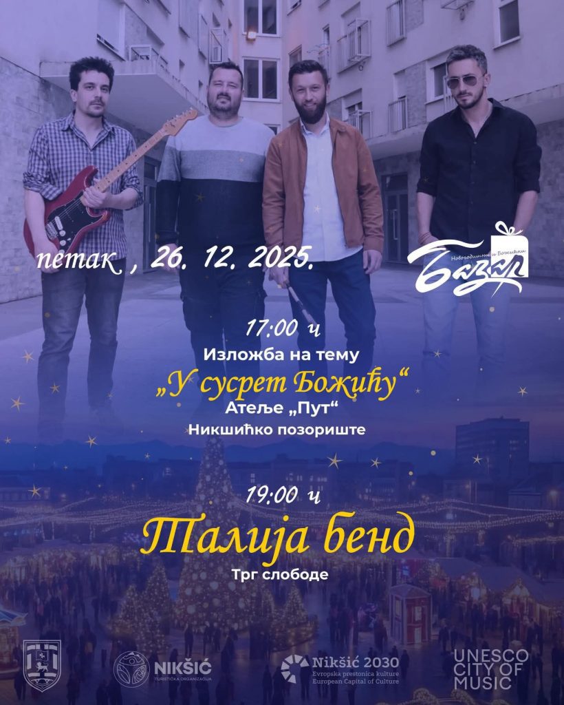 “U susret Božiću” – Izložba i koncert Talija benda u petak u Nikšiću