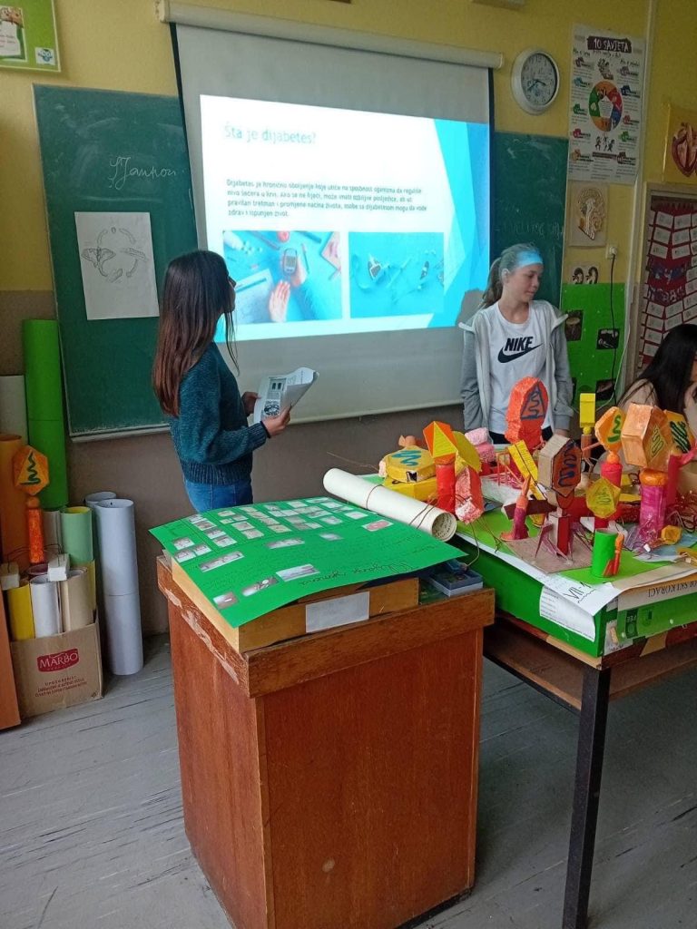 Kroz prezentaciju, diskusiju i razgovor, učenicima VI-3 odjeljenja predstavile su informacije o dijabetesu, uključujući tri tipa bolesti, načine manifestacije, liječenja i mjere prevencije.