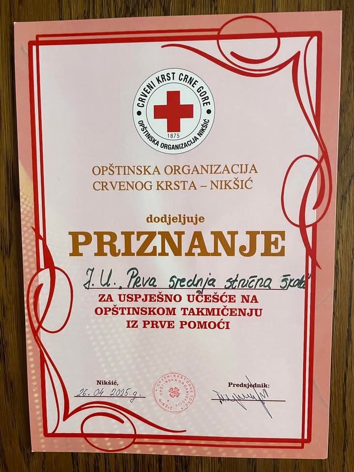 Učenici JU Prva srednja stručna škola osvojili drugo mjesto na takmičenju iz Prve pomoći