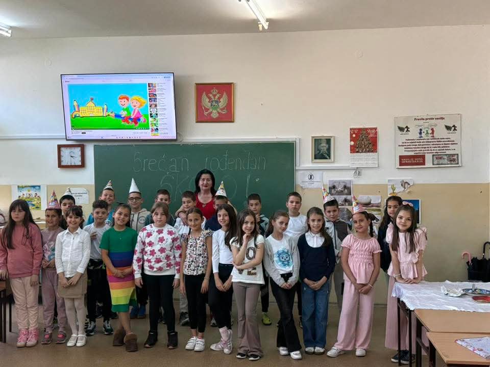 Uz pomoć mame Duške Perović i učiteljice Željke Šćepanović napravljena je slatka, čokoladna torta. Na kraju su svi zajedno zapjevali svojoj skoli:”Danas nam je divan dan, našoj skoli rođendan!”.