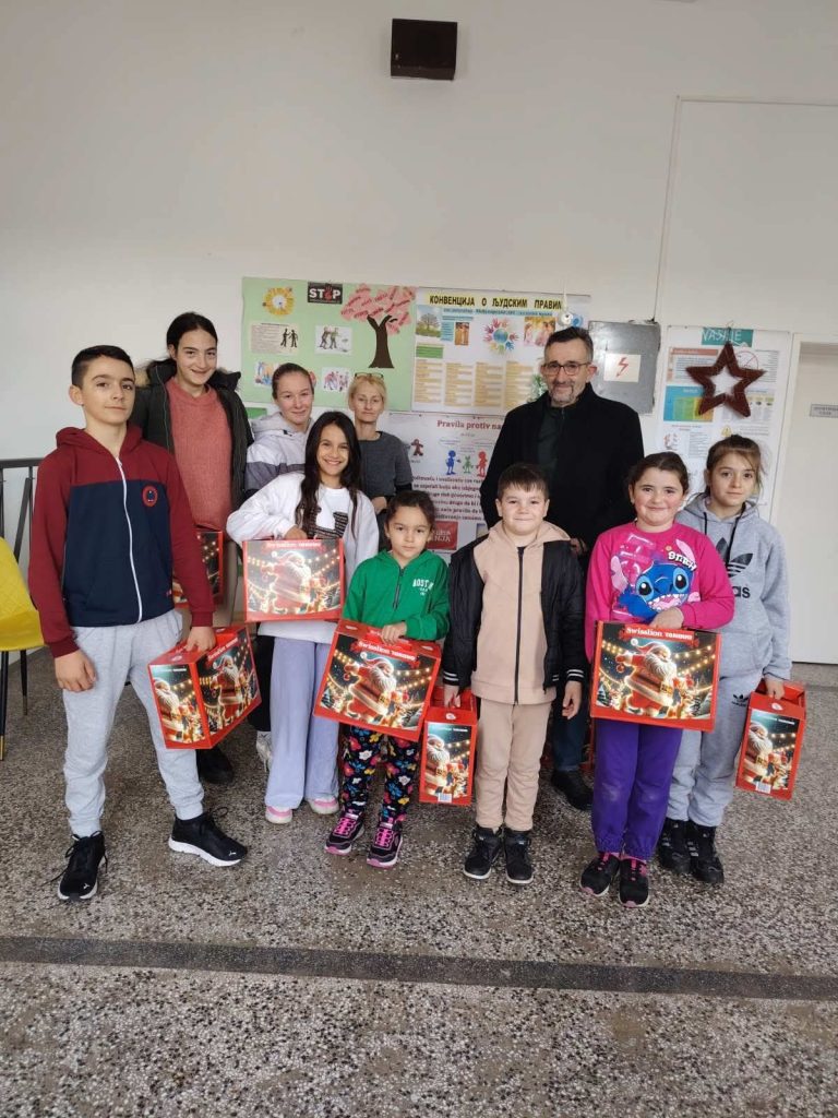 Veljko Ognjenović posjetio je OŠ „Rade Perović“ i tom prilikom učenicima uručio novogodišnje poklon-paketiće.